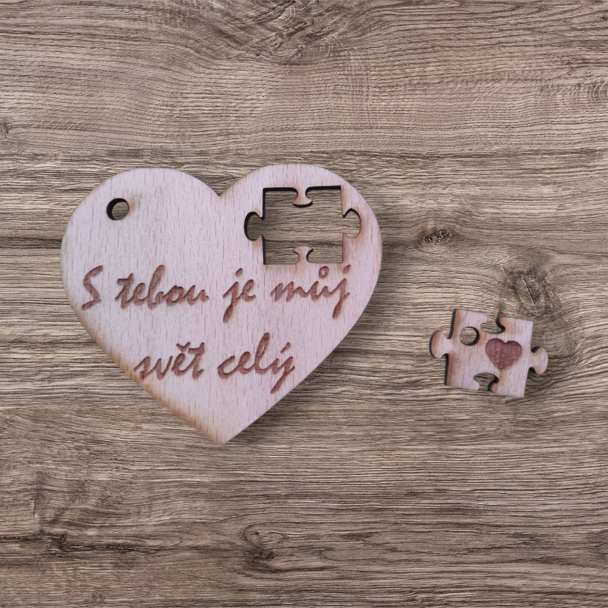 Gravírovaný nápis „S tebou je můj svět celý“ doplňuje jemný detail puzzle dílku – protože právě ten druhý je tím chybějícím kouskem.
