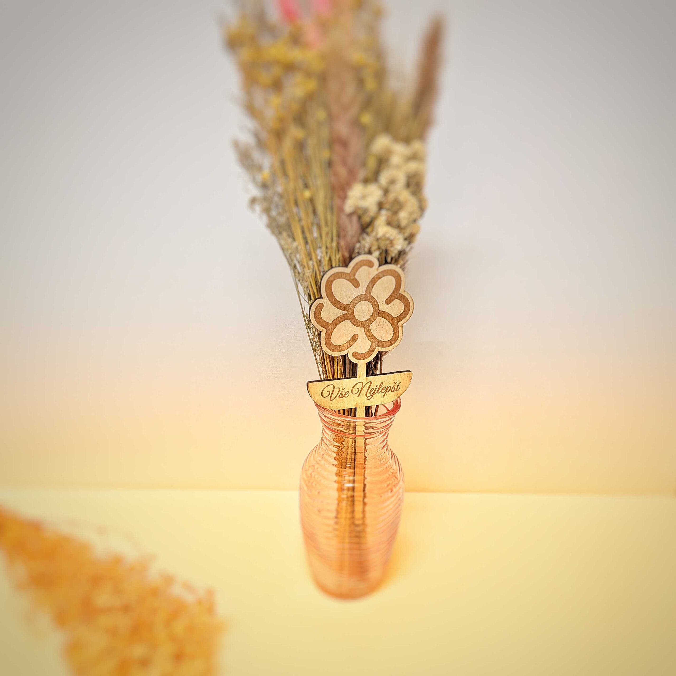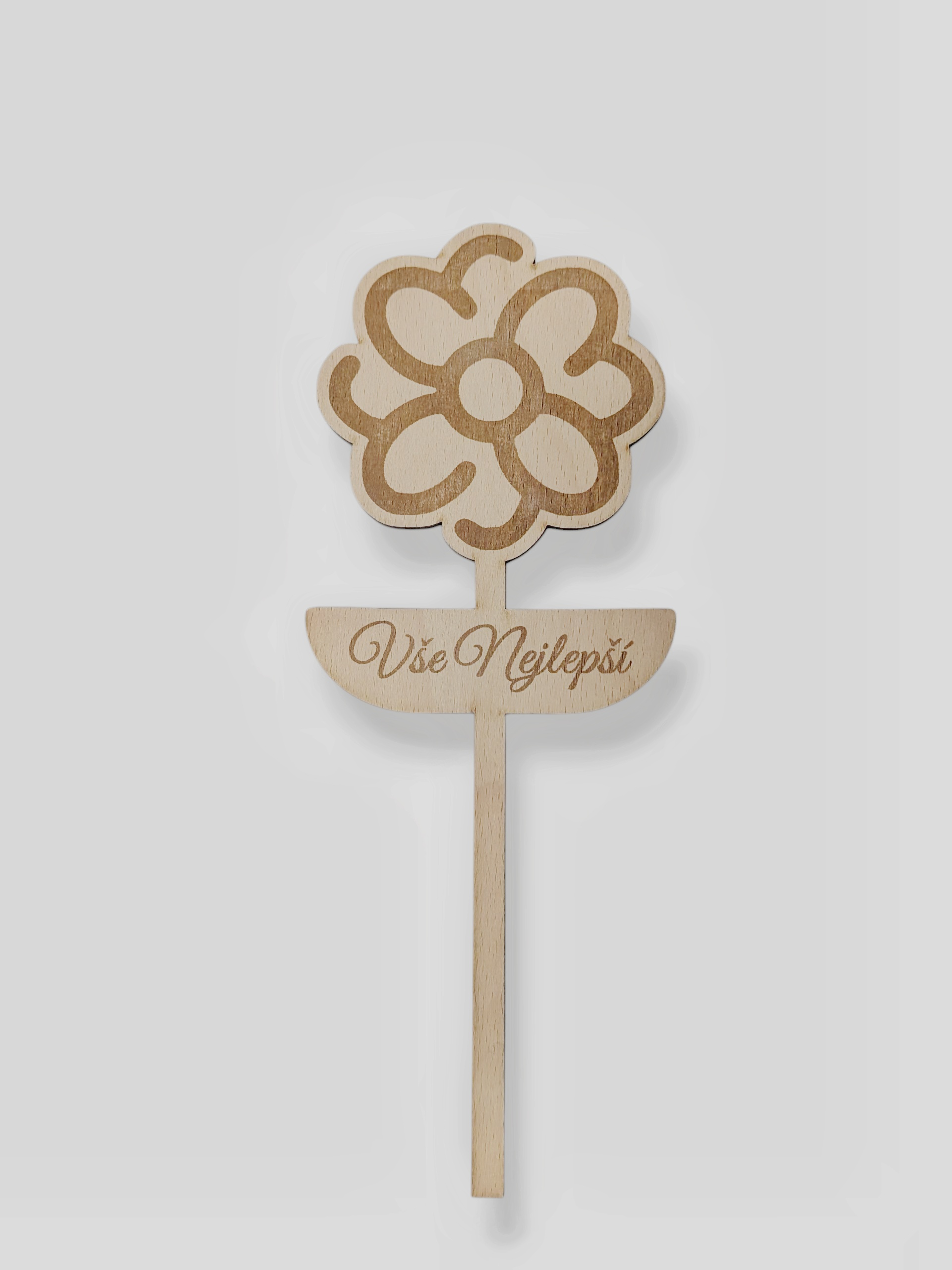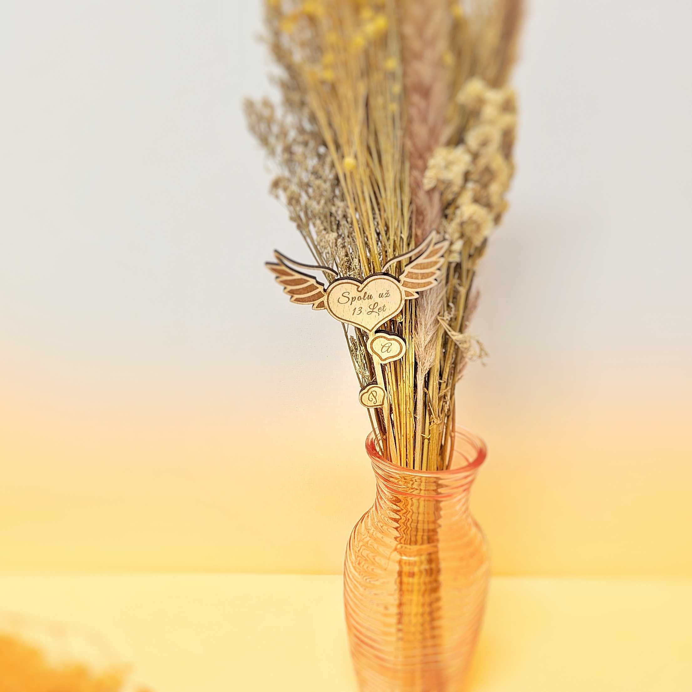 Dekorativní zápichy do květin z bukové nebo březové překližky jsou originálním doplňkem, který dodá tvým květinovým aranžmá osobitý styl. Chceš udělat radost na narozeniny, svatbu, nebo jen tak? Vytvoř si osobní dárek s vlastním textem a motivem, který zaujme na první pohled. Laserové gravírování zajišťuje precizní a trvanlivý vzhled, ať už zvolíš nápis “Všechno nejlepší”, datum svatby nebo třeba vtipnou hlášku. Díky kvalitnímu dřevu se zápichy stanou krásnou památkou, která vydrží roky. Využij naši personalizaci a vytvoř si zápich přesně pro tebe.