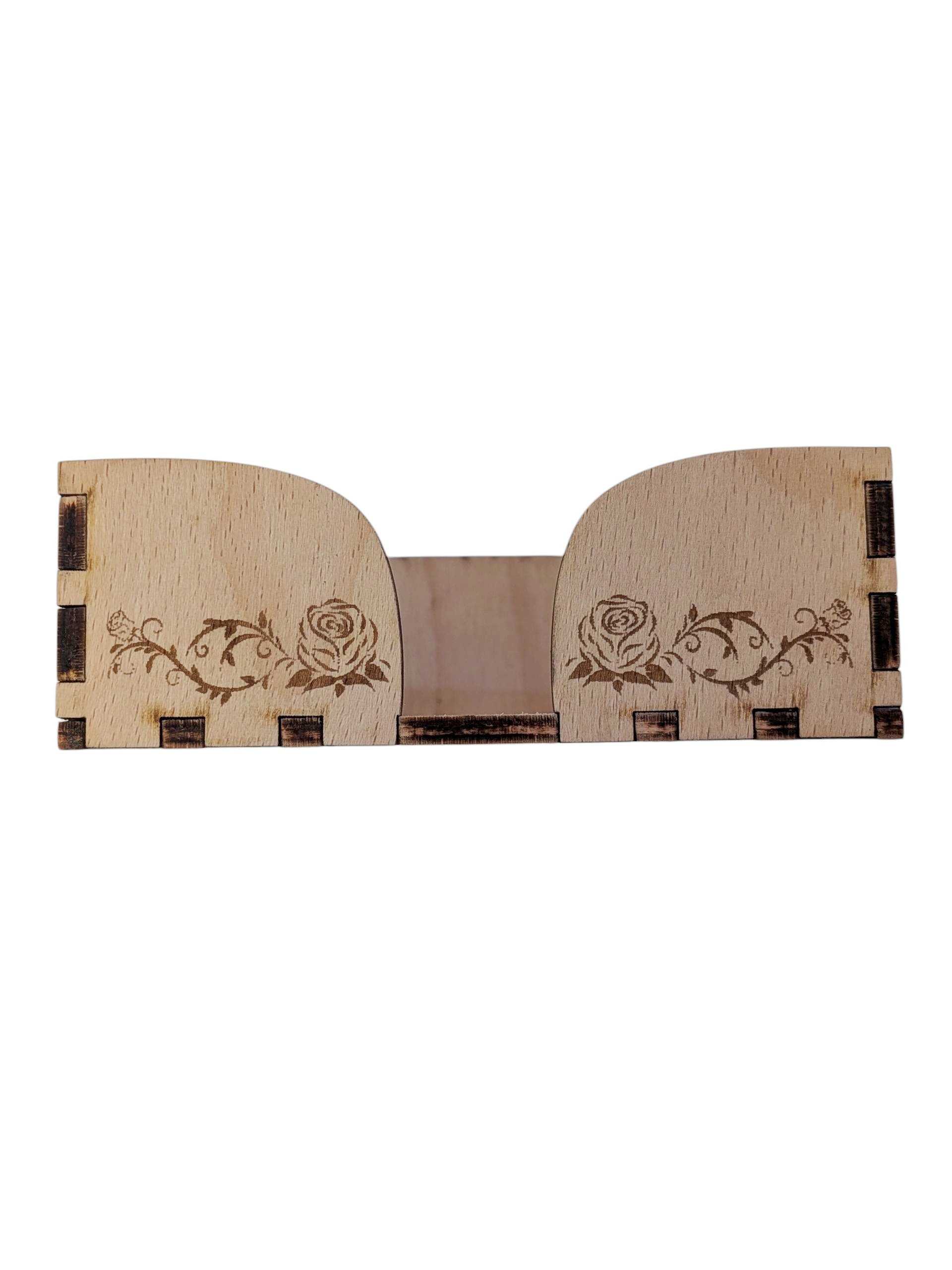 Podtácky jsou uložené ve stylové krabičce, kterou jsme pro tebe vyrobili z bukové překližky. Dřevo je taktéž zdobené laserem, aby krabička perfektně ladila s podtácky a zároveň sloužila jako praktický a dekorativní stojánek.