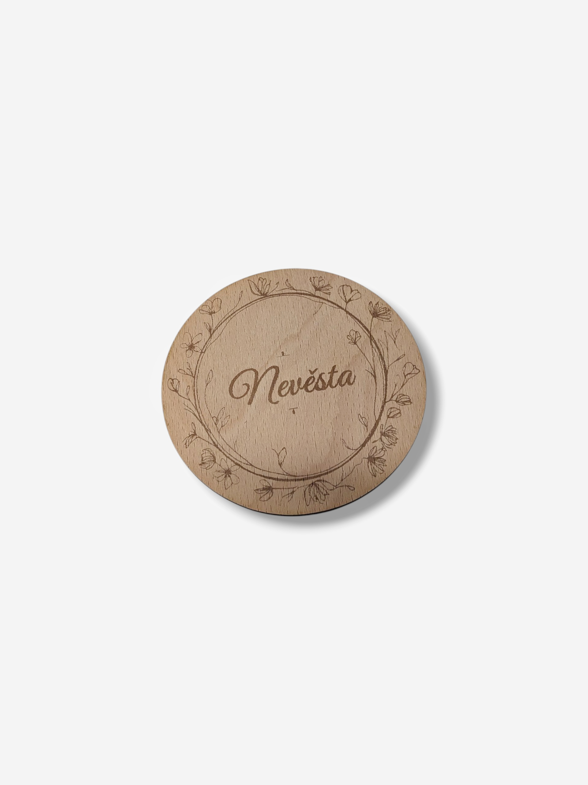 - Široká možnost personalizace: Základní motiv s nevěstou v květinovém věnci je skvělým začátkem, ale možnosti nekončí. Můžete si nechat vygravírovat jména novomanželů, datum svatby, role jako “Nevěsta”, “Ženich”, “Družička”, “Svědek” nebo dokonce krátké osobní věnování.